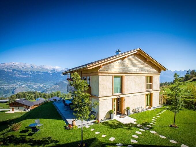Như được trở về quá khứ, ngày nay rơm ngày càng được sử dụng nhiều trong xây dựng nhà ở và các loại công trình khác do được ưa chuộng vì khả năng cách nhiệt và chống cháy. Khách sạn Maya Boutique ở Val d'Hérens, Thụy Sĩ, được xây dựng gần như hoàn toàn bằng rơm và gia cố bằng đất sét. Ảnh: Nature Homes
