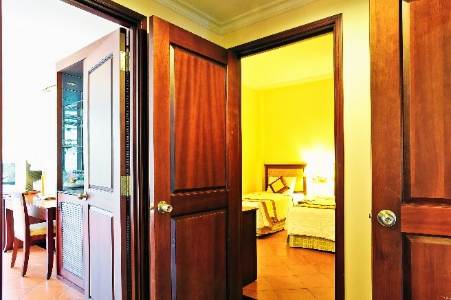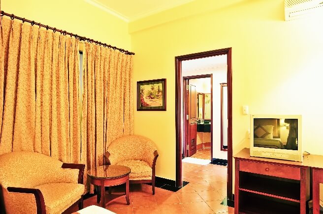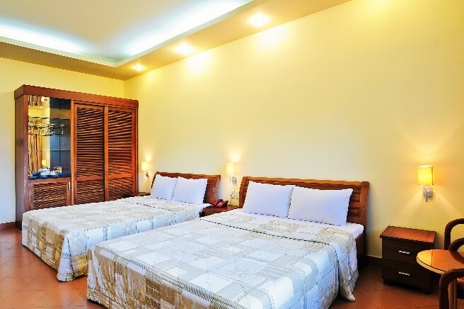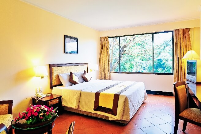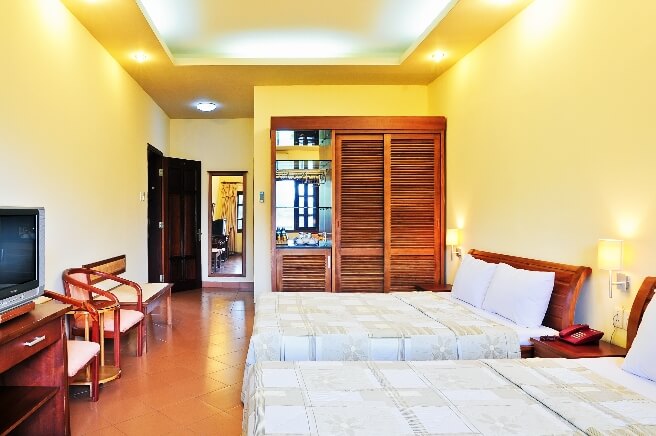 Tiện nghi Phòng: Nhìn ra vườn, điện thoại, TV truyền hình cáp, máy lạnh, bàn làm việc, có phòng connecting room phù hợp cho gia đình 3-4 người, sofa, máy sấy tóc, đồ vệ sinh cá nhân miễn phí, nhà vệ sinh, phòng tắm, dép, minibar.